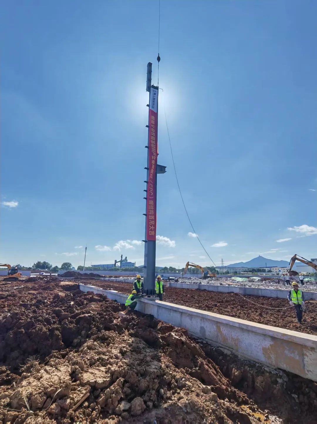 铜陵义安区铜基材料产业基地钢结构厂房首根钢立柱吊装成功