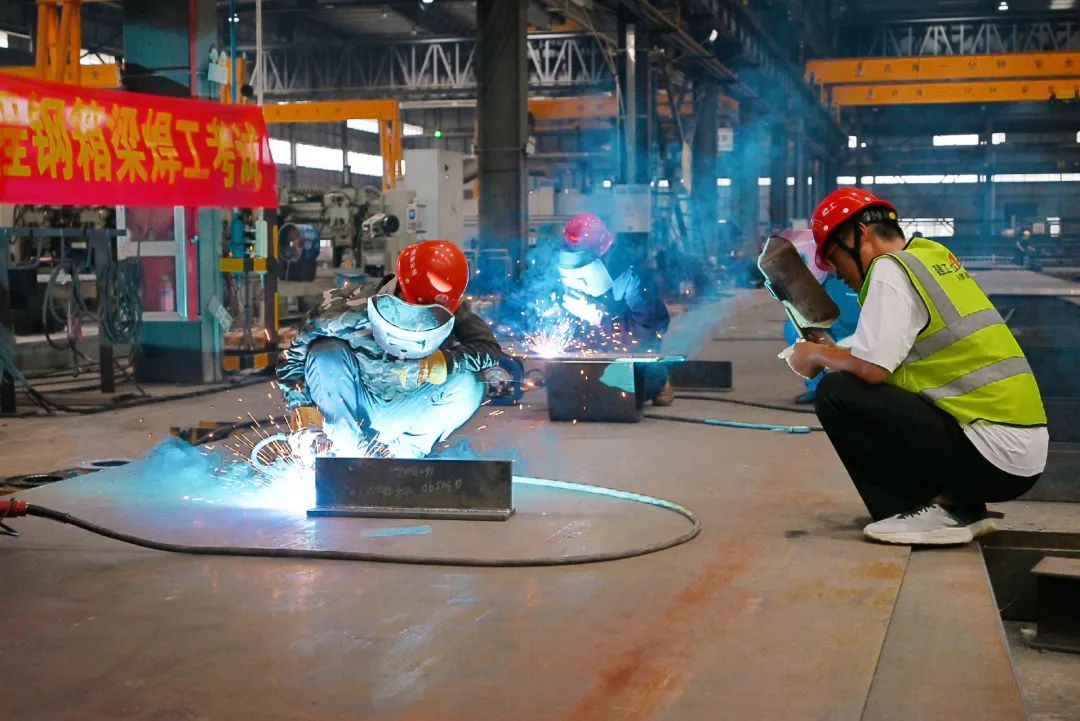 近日,建工智能制造六安公司组织开展了延安路大桥及接线工程钢箱梁焊工技能考试,旨在提升焊接质量,确保工程安全。